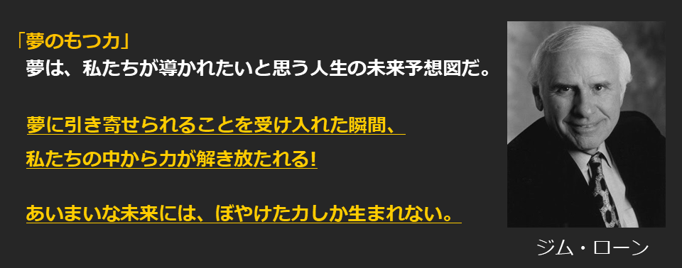 例えば、「7つの習慣」の著者スティーブン・コヴィーや、世界No.1コーチとも称されるアンソニー・ロビンズにも大きな影響を与えたジム・ローンは、夢の持つ力について繰り返し強調してきました。