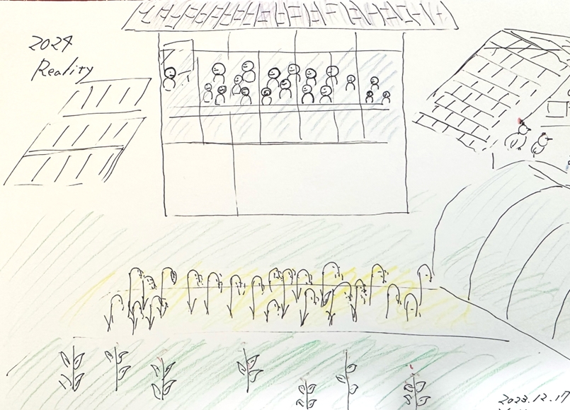 昨年(2024年)末に描いた“夢のヨガ教室”と“農業の豊作”。